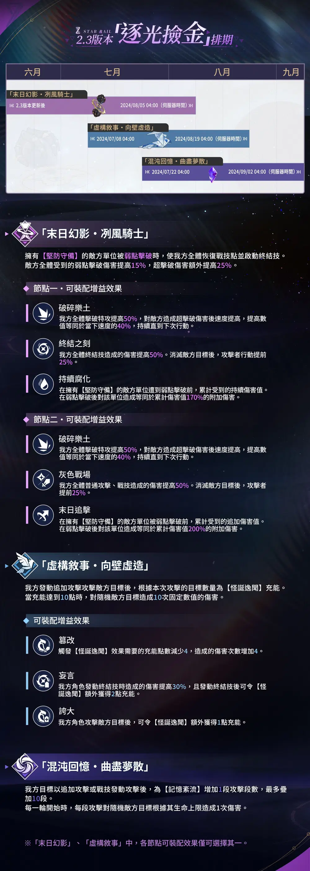 🏠 首頁 新聞 《崩壞:星穹鐵道》2.3版本「逐光撿金」排期小簡發布:2024 年 6 月 8 日 新聞 《崩壞:星穹鐵道》2.3版本「逐光撿金」排期 開拓者好呀~快來看看2.3版本「逐光撿金」的行事曆帕! 推薦閱讀PS5開放世界動作神作《赤血沙漠》絕美4K畫質展現帕衛爾壯闊新境界夢幻冒險!Xbox Series X|S 開放世界《馬廄故事-森林與草地騎行》極致流暢,還能騎傳說獨角獸!頂級體驗!Switch 2 模擬經營《集合啦!動物森友會》4K 畫面美哭,12人連線太神免費殺時間力作!PS5《Reloadian》動作競技爽快橫向 PvPvE 全新玩法公開 註:本文轉載至 HoYoLAB 貼文:2.3版本「逐光撿金」排期 《AI 織夢》正式上線!立即體驗 體驗 AI 生成的無限世界!開啟你的「互動小說」與「角色扮演」冒險。 新用戶註冊即贈 5000 試玩積分,立即開始你的冒險~ 立即免費註冊 進一步了解 AI 織夢 加入社群獲取最新消息: LINE 群組 Discord 群組 《AI 織夢》正式上線!立即體驗 體驗 AI 生成的無限世界!開啟你的「互動小說」與「角色扮演」冒險。 新用戶註冊即贈 5000 試玩積分,立即開始你的冒險~ 立即免費註冊 進一步了解 AI 織夢 加入社群獲取最新消息: LINE 群組 Discord 群組 文章標籤# 崩壞:星穹鐵道# 逐光撿金# 遊戲行事曆# 鳴潮官方 分享文章 在 Facebook 分享 在 Line 分享 在 X (Twitter) 分享 在 Telegram 分享 在 電子郵件 分享 複製至剪貼簿 小簡 遊戲、小說、動漫、漫畫、電影、劇集相關新聞文章記者。 文章: 4816 上一 文章 《崩壞:星穹鐵道》仙舟演武儀典———即將開幕 下一 文章 《崩壞:星穹鐵道》官方發布新 SGF 參展影片——「做夢的藝術」 發佈留言取消回覆很抱歉,必須登入網站才能發佈留言。