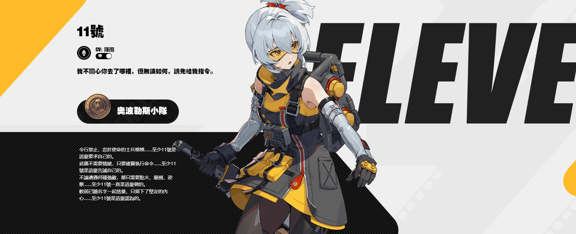 11號 做為一般卡池(普池)就能抽到的 S 級角色,擁有極高的普攻傷害,她的普攻非常非常的痛。火焰劍附魔讓她的平A攻擊(普攻)更為強大,是一名操作簡單但效果驚人的角色,非常適合希望輕鬆遊玩的玩家,前期練了絕對不虧。