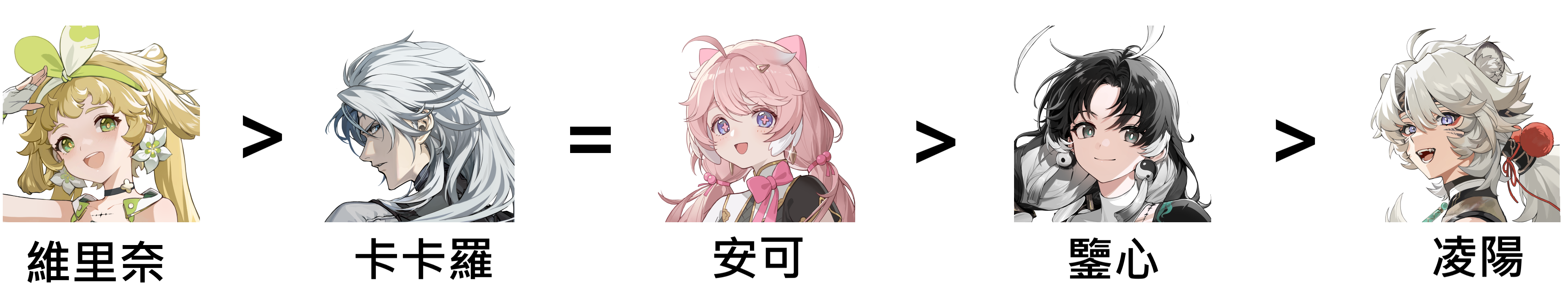 以上介紹的每一位角色都有其獨特的優點和用途,你的選擇應根據你的游戲策略和隊伍需求來決定。例如如果妳會來想抽五星角 吟霖,那可以考慮選卡卡羅,你想在 5 天內快速成立一個能用隊伍,就選安可,讓安可和第 5 天送的散華搭配。