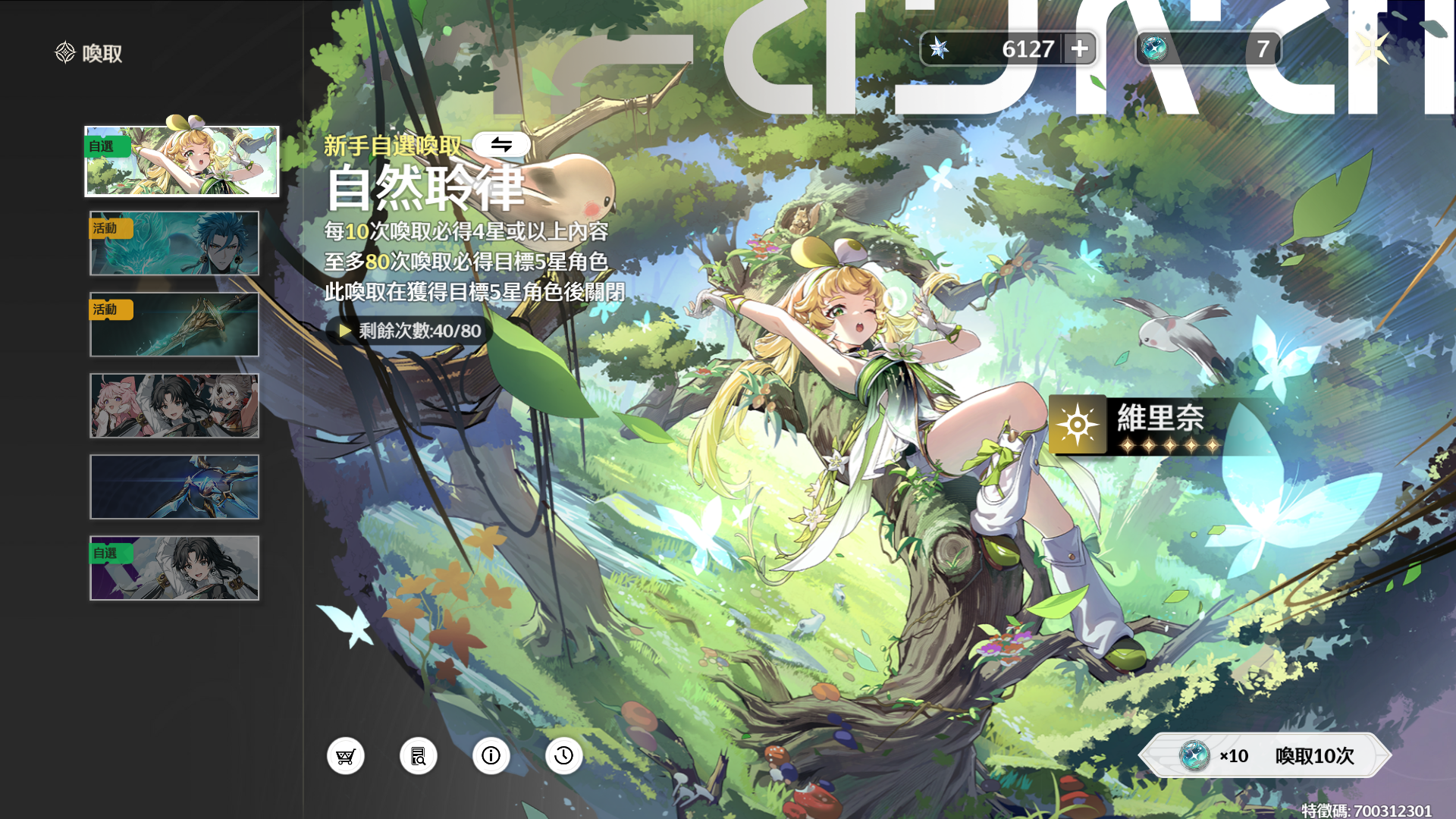 新手換取(萬象新聲)卡池結束後,會開啟一個 新手自選換取卡池(80 抽),你如果 新手換取(萬象新聲)卡池有抽到 維里奈,那你這 新手自選換取卡池(80 抽),可以定向選擇 「卡卡羅」或「安可」。