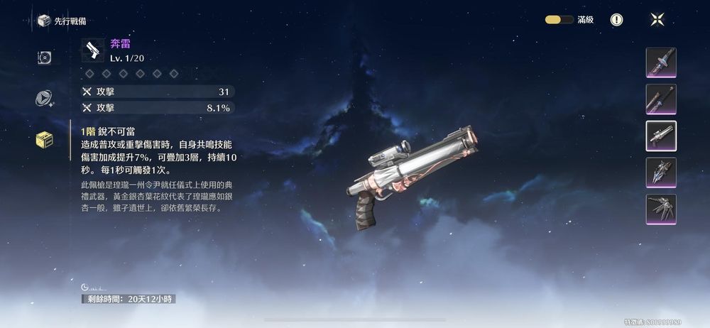替代武器選擇:停駐之煙 > 奔雷