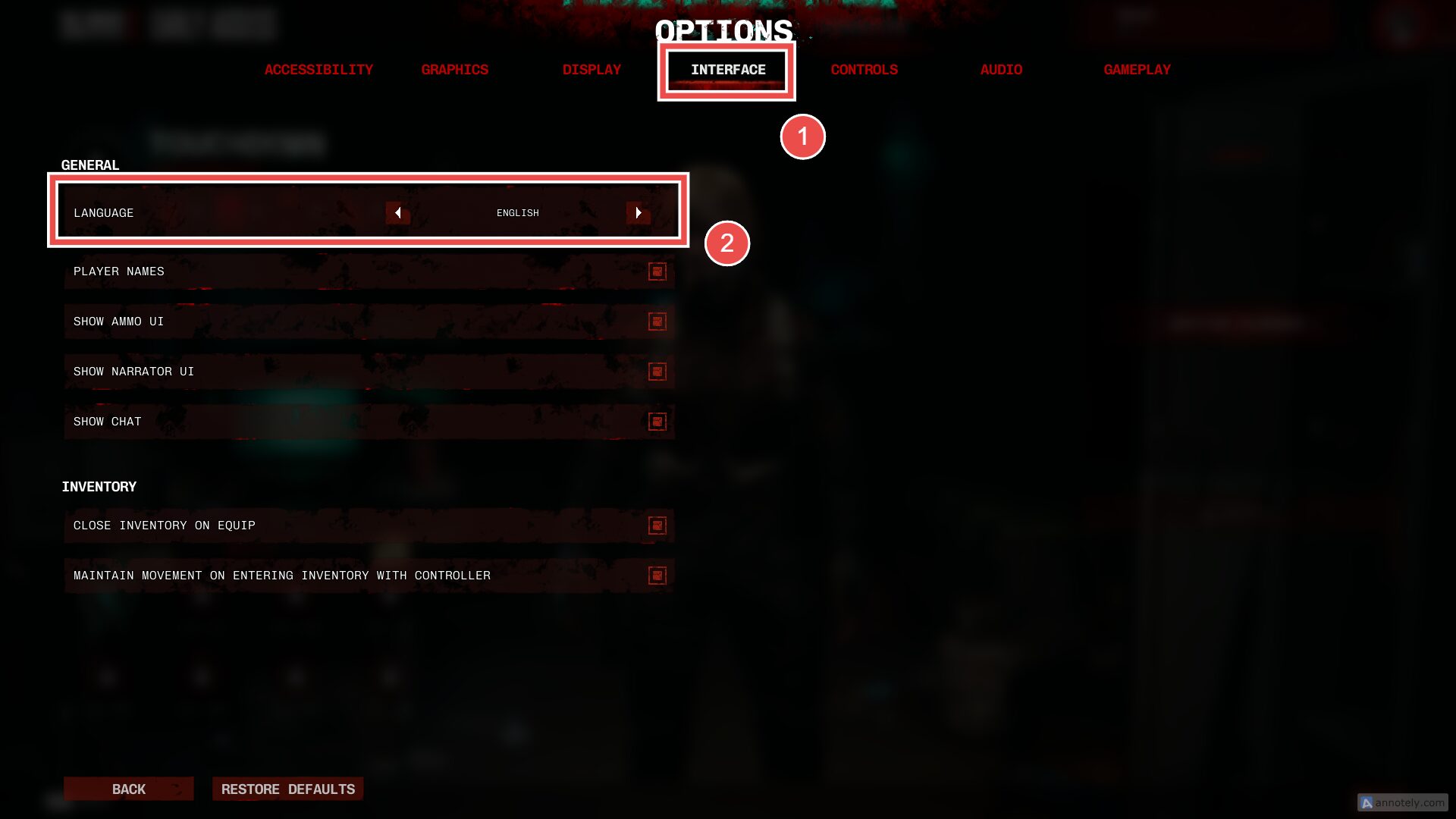 要將《No More Room In Hell 2》地獄已滿遊戲介面改成中文介面,很簡單,只要 按「ESC」→「INTERFACE」→ 「LANGUAGE」→ 將選項從 “ENGLISH” 英文選項改成 “CHINESC” 中文,然後再按左下角的「返回」鍵,《No More Room In Hell 2》就會變成中文介面了。