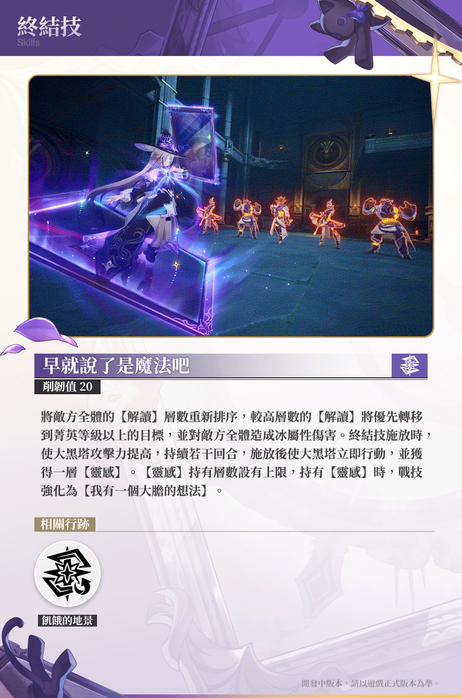 - 【飢餓的地景】每層額外提升終結技的傷害倍率4%,最多額外提升396%。