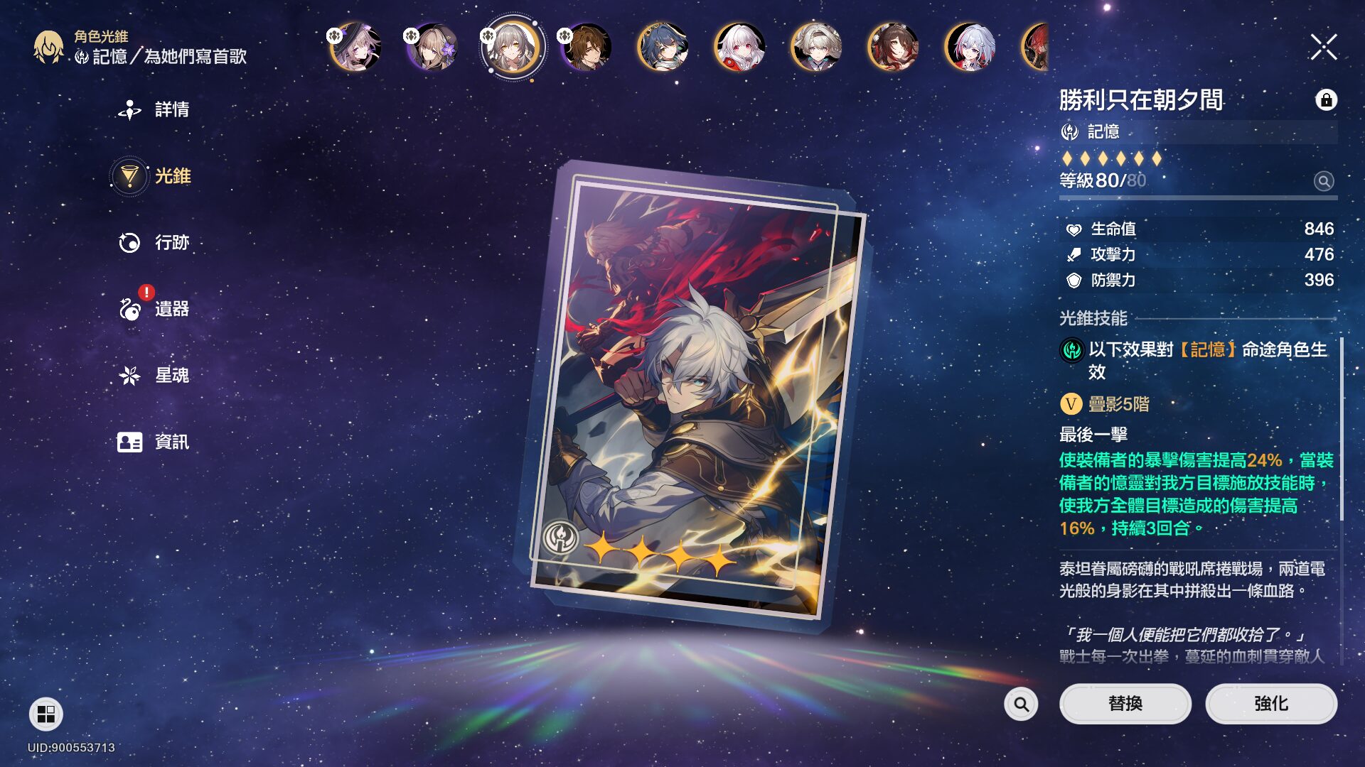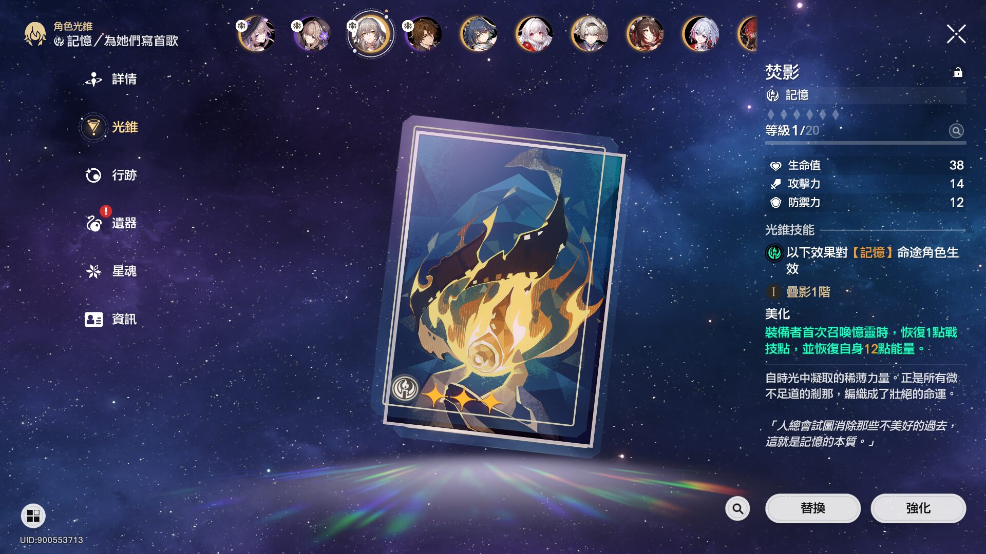 增加戰技點和能量恢復,適合初期未取得核心光錐時使用。