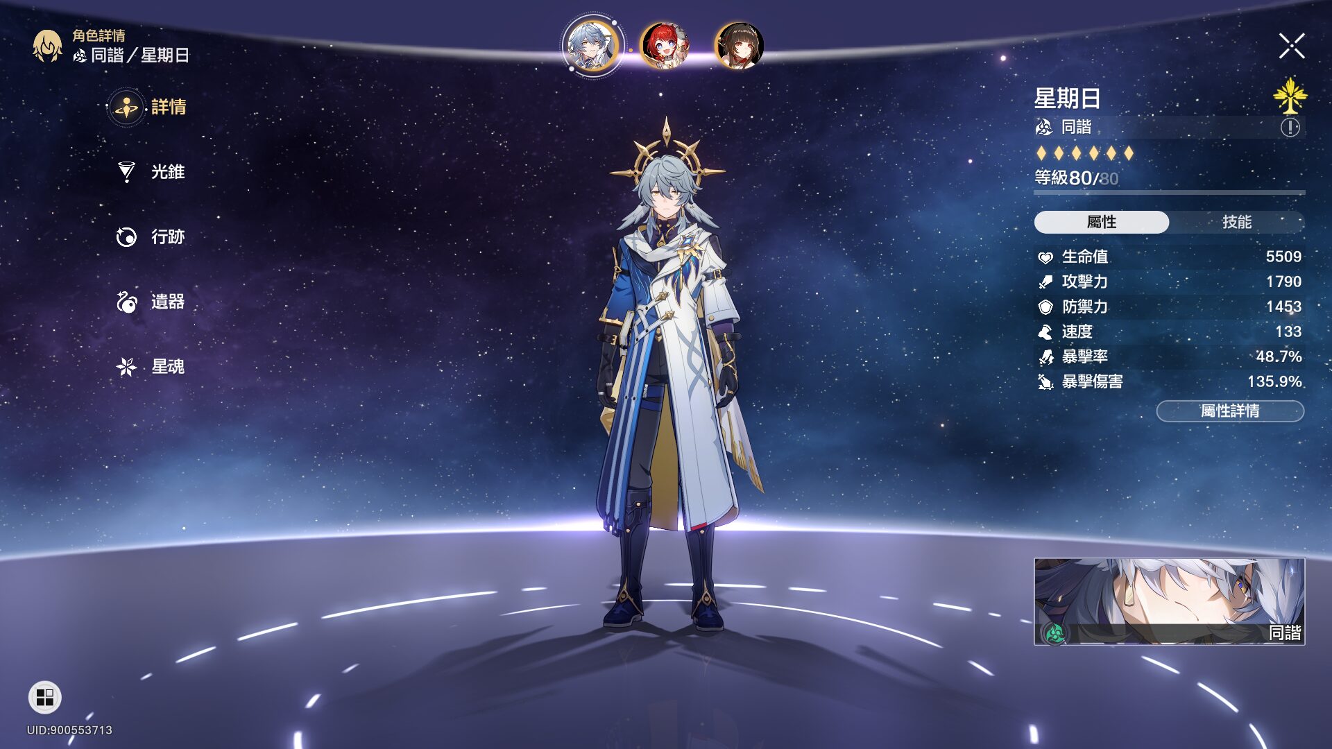 平民單核輸出隊伍,由遐蝶來輸出,星期日、記憶主提供穩定的全隊曾傷/拉條效果,靈砂回血產點。適合打虛構、渾沌、末日幻影三路關卡三路通吃。