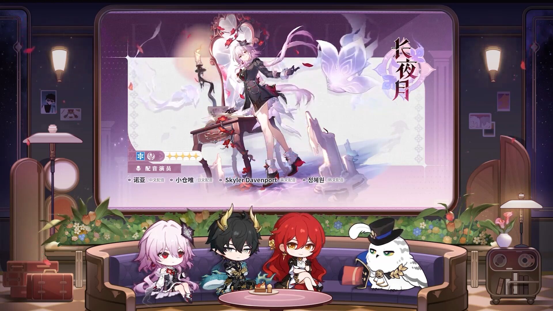 3.6 版本將迎來全新五星「虛無」命途的冰屬性角色「長夜月」。她的整體設計圍繞著幽靜的燭光與飛舞的銀蝶,散發著一絲神秘與憂鬱的氣質,預計將會是隊伍中施加負面效果的關鍵人物。