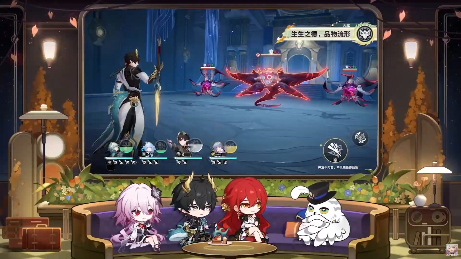 前瞻節目也展示了「丹恆•騰荒」的實機戰鬥畫面。作為毀滅命途角色,他的技能擁有強大的擴散攻擊能力,能夠同時對主要目標及相鄰敵人造成大量傷害,是一位值得期待的強力輸出角色。