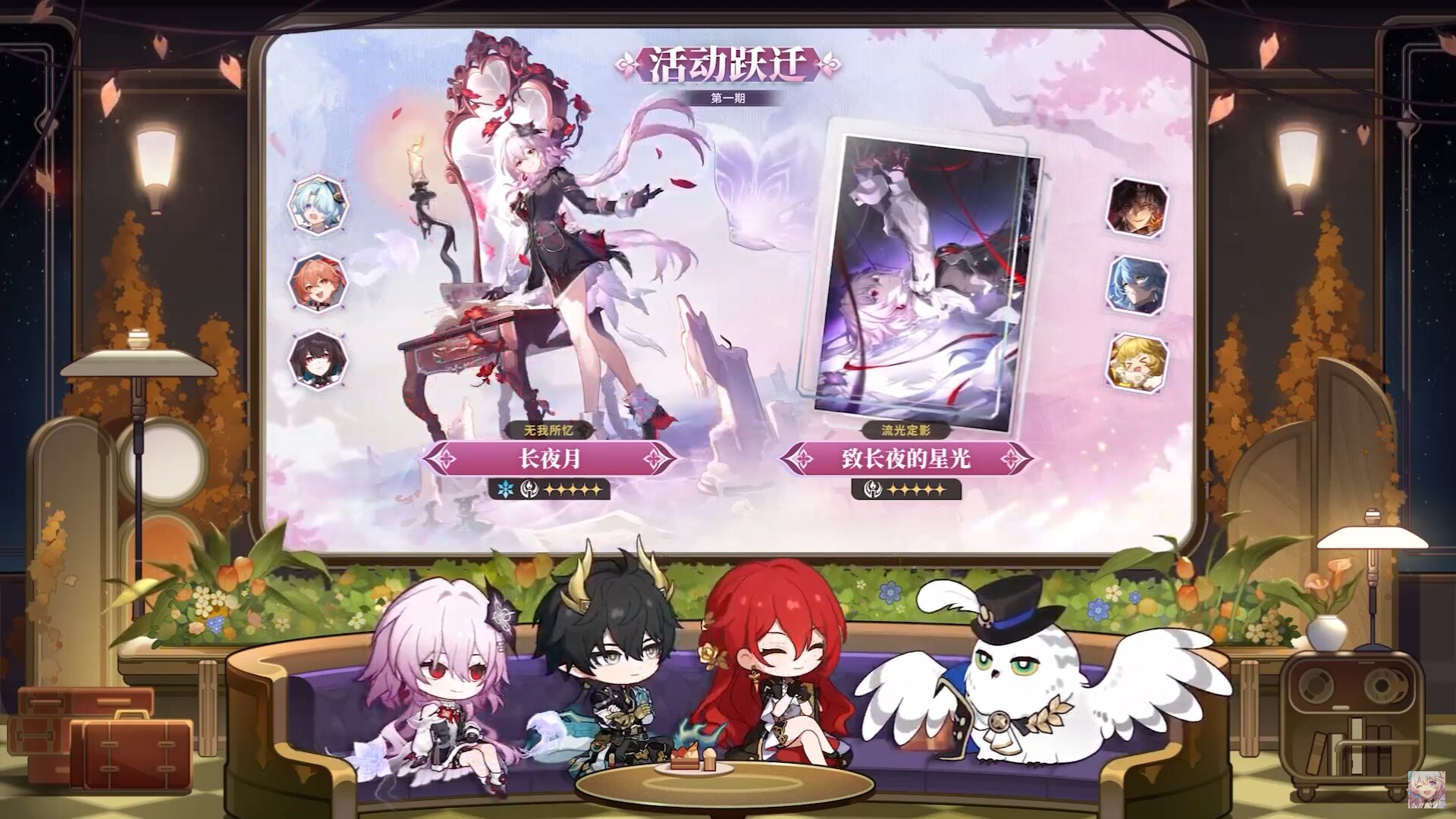 3.6 版本第一期的活動躍遷將由新角色「長夜月」領銜,同行的四星角色包含阿蘭、桂乃芬與米沙。她的專屬光錐「致長夜的星光」也將同步推出,預計能大幅提升其虛無命途的能力。