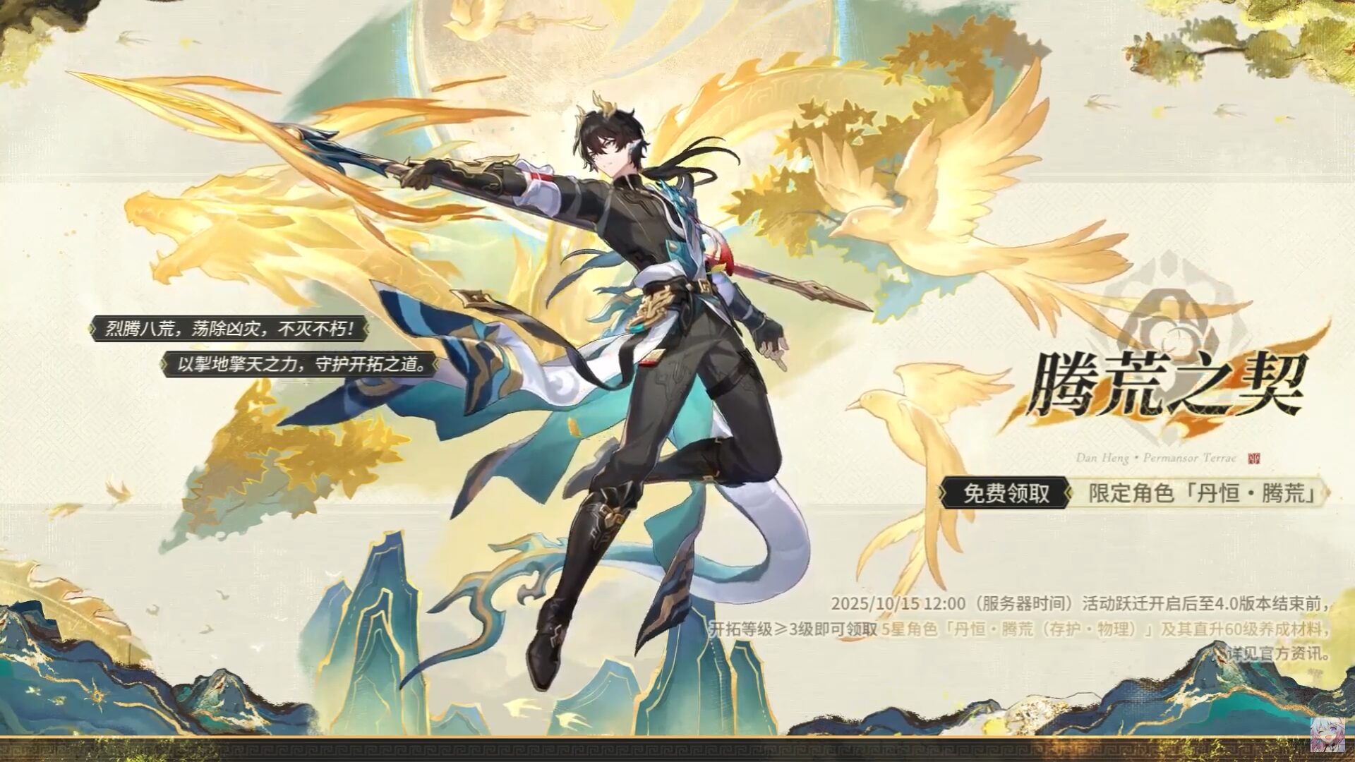 版本下半場將由萬眾矚目的「丹恆•騰荒」接棒,這位物理屬性存護命途角色將攜其專屬光錐「縱然山河万程」登場。同行的四星角色為素裳、寒鴉和希露瓦,對於缺少強力存護或想補強隊伍保人能力的玩家來說,是不容錯過的卡池。