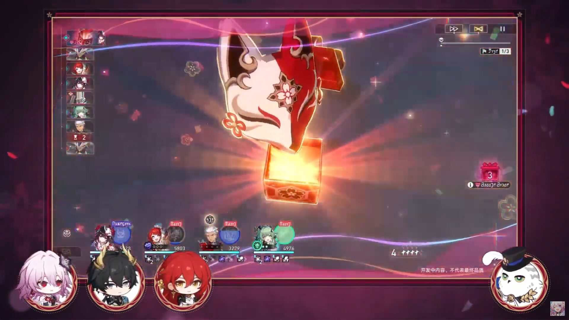 「喜劇人」登場 戰鬥畫面中可以看到一個巨大的驚喜魔盒與狐狸面具,這便是化身為「喜劇人」的角色,他們將在戰鬥中為玩家提供關鍵的支援。