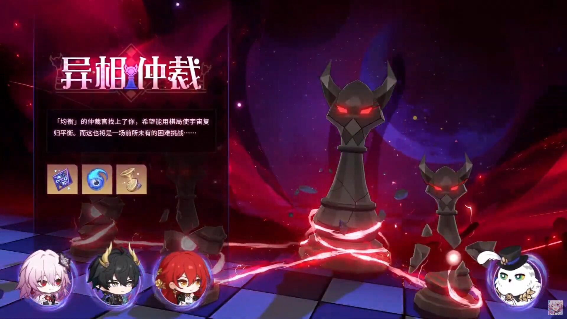 挑戰「異相仲裁」還可以獲得新的代幣,用於在專屬商店中兌換各種獎勵,除了常規的養成材料外,還包括全新的頭像以及一個可以在遊戲場景中跟隨玩家的「隨從」。