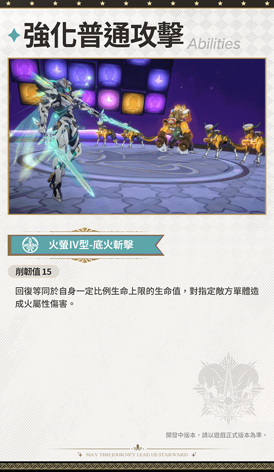 「完全燃燒」狀態下,攻擊沒有火屬性弱點的敵人也能削減韌性,效果等同於原技能削韌值的55%。