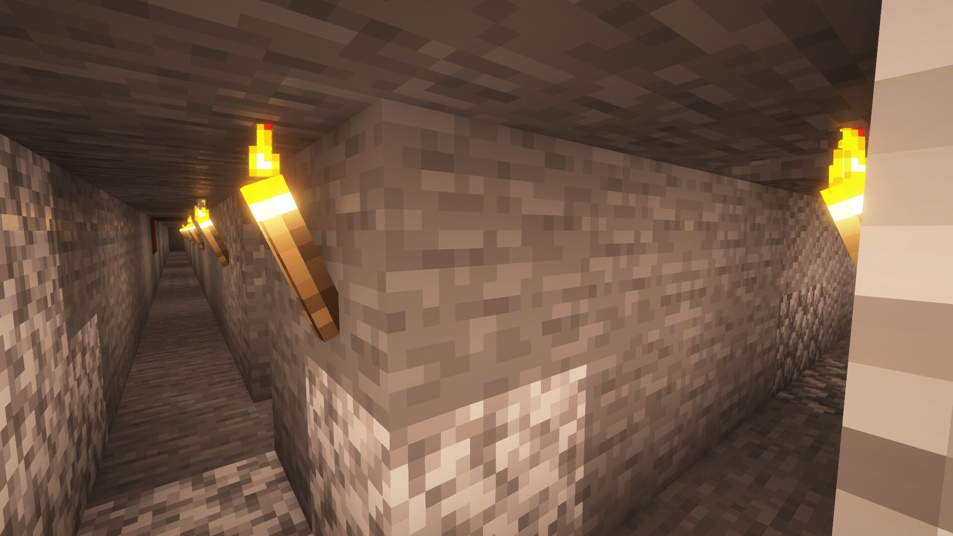 - 分支通道: 從主通道的兩側,每隔 2 格的距離,向前挖掘分支通道。這樣做的原因是,鑽石礦脈通常是 2×2 的大小,隔開 2 格挖掘可以讓您看到兩側牆壁後方的所有礦物,最大化視野,又不會浪費時間挖掘不必要的石頭。