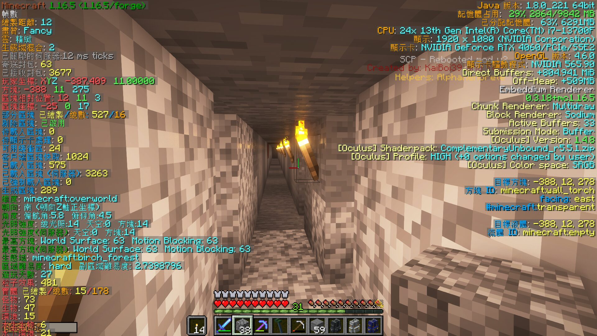 - 主要通道: 在 Y=11 建立一個安全的小基地後,開始挖掘一條 2 格高、1 格寬的主通道。